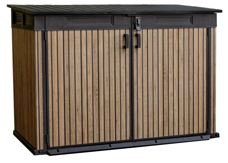 A Keter SIGNATURE 2020 literes szekrénye elegáns és praktikus megoldást kínál a tárolók és egyéb kerti szerszámok tárolására.