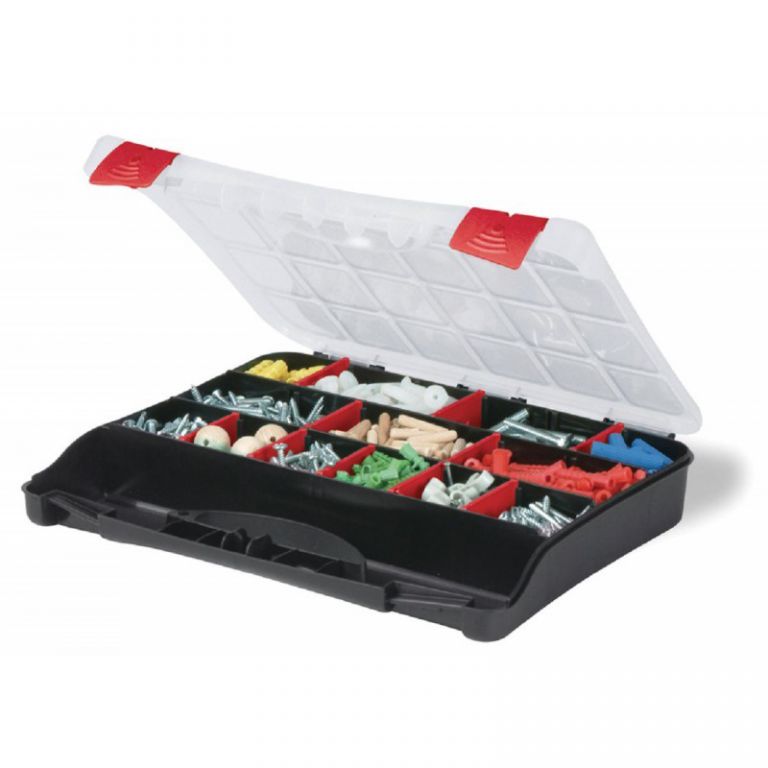 Kiváló minőségű műanyag szortimenter, zárható fedéllel. Alkalmas alkatrészek, csavarok, anyák, alátétek és egyéb dolgok tárolására. A szortimenter segítségével a dolgai áttekinthetővé válnak.