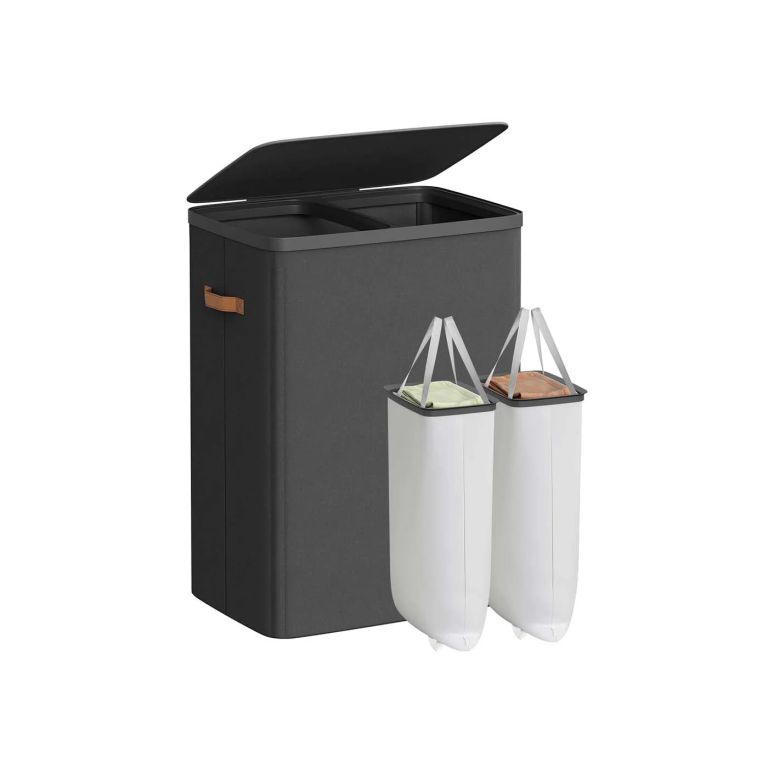 Hozzon rendet és stílust otthonába ezzel a kétrekeszes szennyeskosárral. A világos és sötét ruhák számára elkülönített rekeszek megkönnyítik a mosást és időt takarítanak meg. Az elegáns fekete kialakítás minden fürdőszobát vagy hálószobát kiegészít.