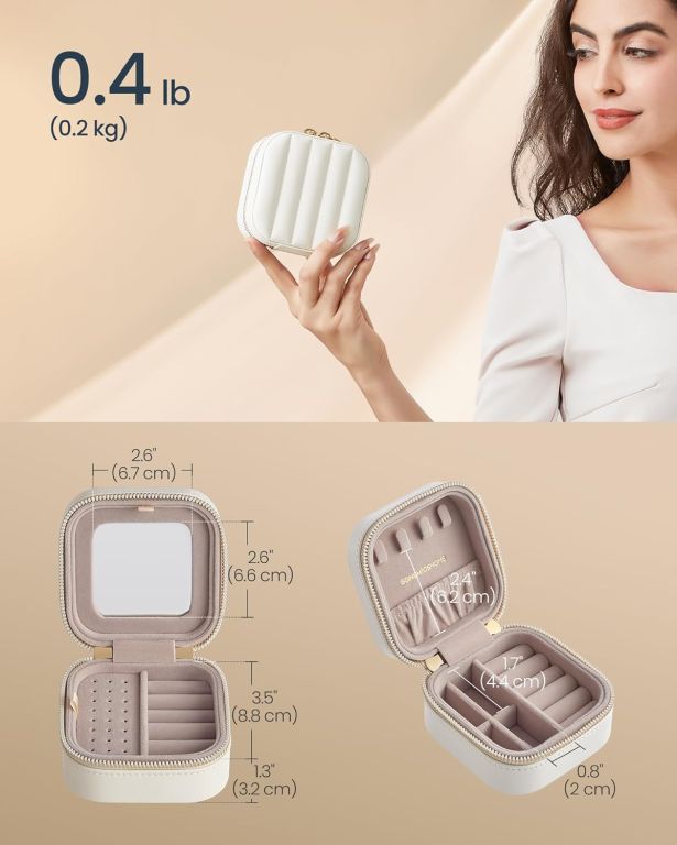 Utazz stílusosan és rendezetten. A finom varrással és fényes fémverzióval ellátott kompakt ékszerdoboz ideális társ lesz utazáshoz és mindennapi használatra. Az elegáns kialakításnak és a beépített tükörnek köszönhetően eleganciával és áttekinthetően rendszerezheted kedvenc kiegészítőidet.