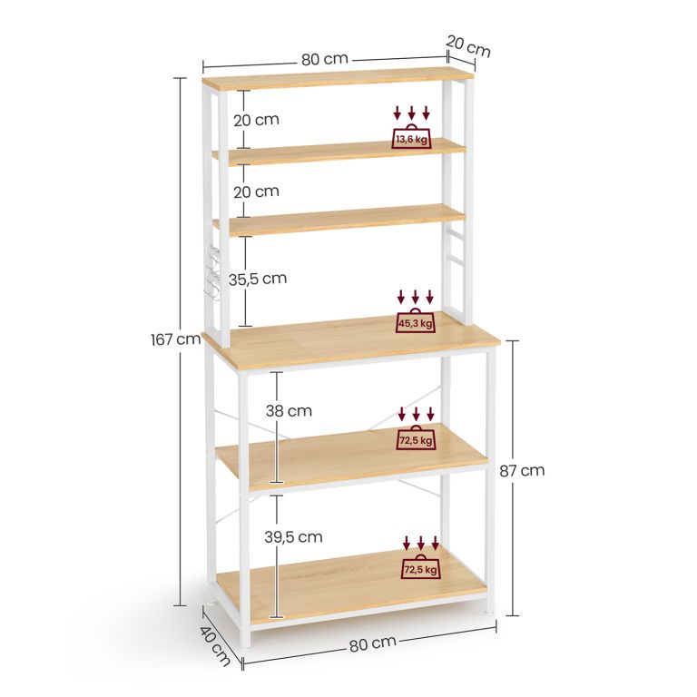 Konyhai polc 80 x 40 x 167 cm 6 polc fehér tölgy