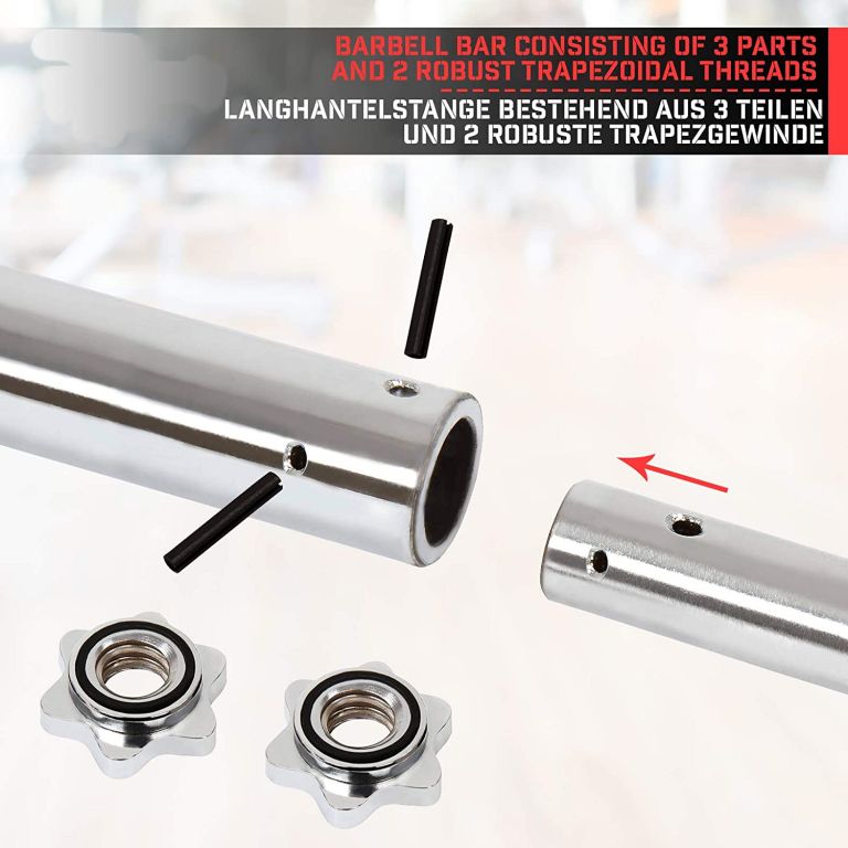 Az erősítő rúd maximum 100 kg tárcsák terhelését teszi lehetővé, amelyek csillagzárakkal szorosan záródnak. A fitneszléc két 20 cm-es fogantyúja csúszásmentes felülettel rendelkezik, ami biztosítja, hogy a kezek ne csússzanak le a rúdról. Az emelőrúd minden szabványos 25 mm-es tárcsához alkalmas.