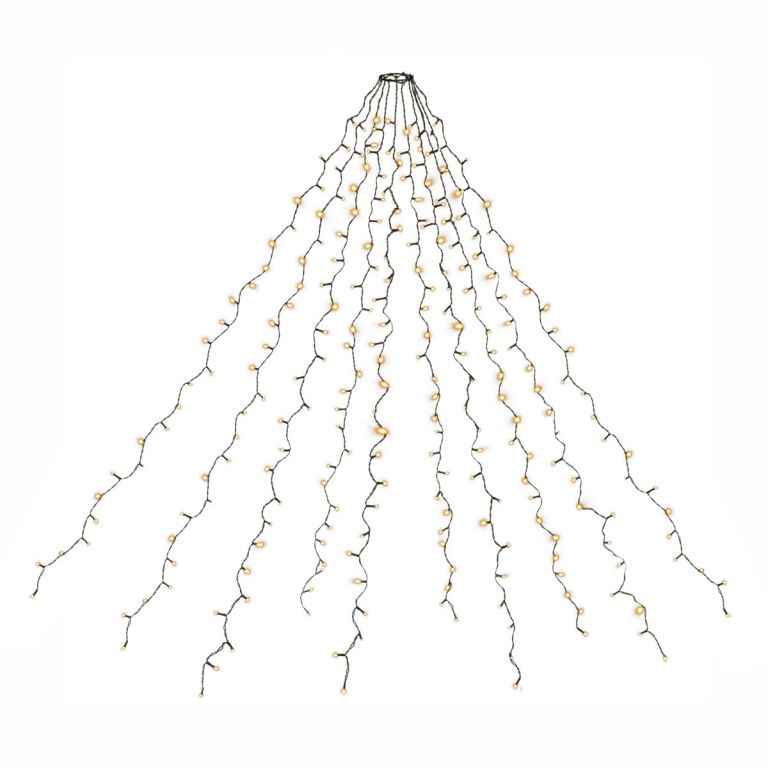 Praktikus kúp alakú lánc 280 LED-del meleg fehér színben, 8 2 m-es szálon elosztva, 2 m magas karácsonyfák megvilágítására szolgál. A tápkábel körülbelül 5 m hosszú. Ideális beltéri és kültéri használatra. Egyszerűen helyezze a gyűrűt a fa tetejére, és az egyes szálakat rugalmasan elhelyezheti bárhol a fán. A karácsonyfa világítás pillanatok alatt fel lesz szerelve. A LED-lámpák körülbelül 9 cm távolságra vannak elhelyezve. 8 különböző funkciójával a világítási lehetőségek széles választéka áll rendelkezésére, és ideális kertek, teraszok és erkélyek, fák, cserjék díszítésére, valamint otthoni hangulatvilágításra, bulikra, esküvőkre, születésnapokra, karácsonyra és egyéb ünnepekre. Falak, ablakok, polcok és ajtók dekorációjaként is használható.