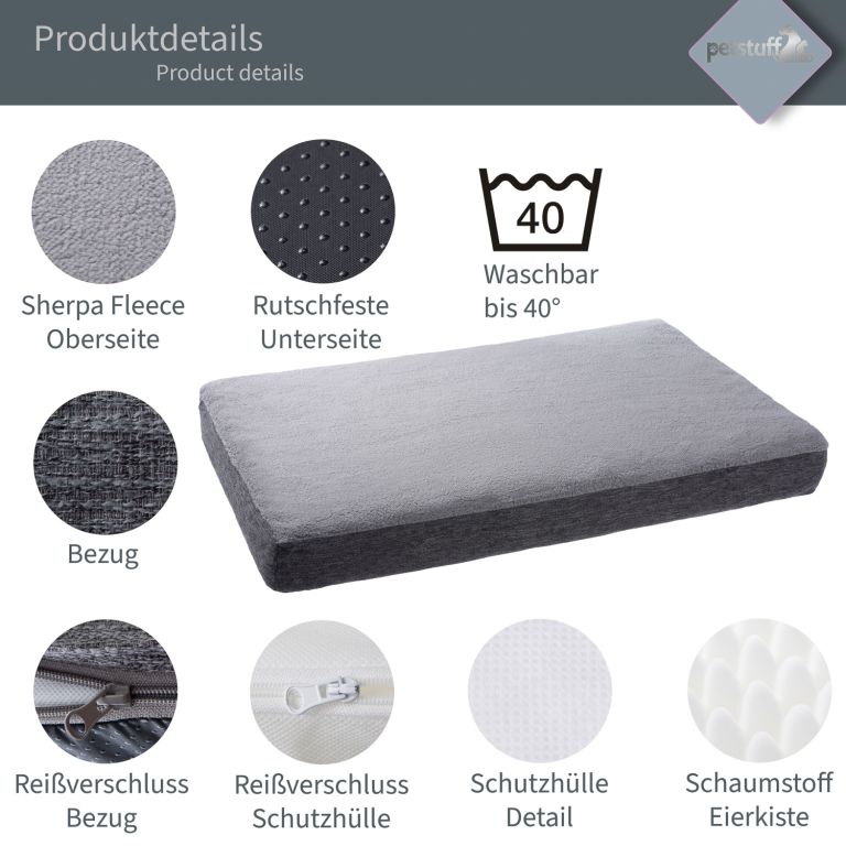 A kisállat kiságy kellemes alvási hely kutyája, macskája vagy más házi kedvence számára. Kiságyunk fészer, ketrec vagy szállítódoboz kiegészítőjeként is használható. A súly egyenletesen oszlik el a párnán és elnyeli az ütéseket, ami nem csak kényelmes, de védi is az állat ízületeit. A cipzár segítségével könnyedén leveheti a huzatot, és kézzel vagy alacsony hőmérsékleten moshatja. Ezenkívül a vízlepergető belső fólia védi a habot a szennyeződésektől. A párna alsó része robusztus anyagú, a további csúszásgátló gomboknak köszönhetően csökken a csúszás.