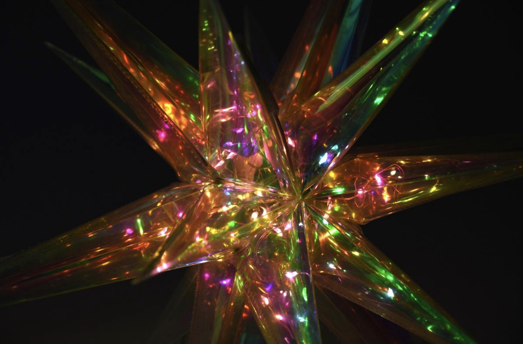 Specifikus 3D-s kialakítás - a csillag műanyagnak tűnik, és több szögből is látható.