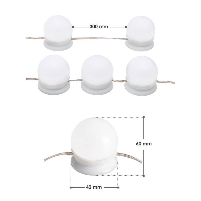 Varázsolja át a sminkasztalát fényárban úszó inspiráló hellyé! A 10 LED izzóból álló fényfüzér tökéletes megvilágítást biztosít a mindennapi sminkeléshez és bőrápoláshoz. Modern megjelenése és egyszerű felszerelése révén stílusos kiegészítője lesz bármely enteriőrnek.