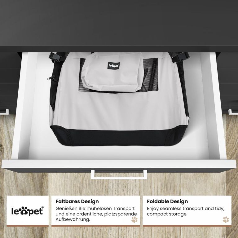 Összecsukható kutyaláda ergonomikus fogantyúkkal, mosható alátéttel és tállal. Utazzon stresszmentesen és maximális kényelemmel.