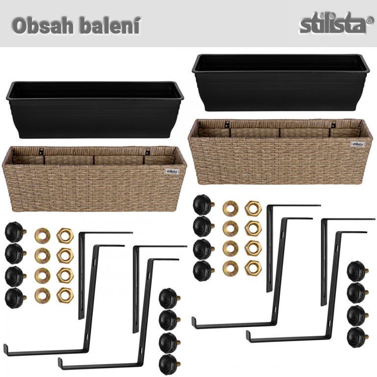 A szintetikus szál poliratán lenyűgöz kiváló tulajdonságaival. Ellenáll az időjárásnak, az UV sugárzásnak, taszítja a szennyeződéseket és könnyen tisztítható. A levehető műanyag betéteknek köszönhetően a virágcserepek ültetése egyszerű. A szállítás tartalmaz egy állítható fém csuklópántot a virágcserepek erkélyhez vagy korláthoz való rögzítéséhez.