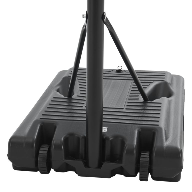 Erős acél szerkezet és strapabíró műanyag palánk garantálja a hosszú élettartamot. Stabil talp vízzel vagy homokkal tölthető, a kerekek pedig megkönnyítik az áthelyezést. Egyszerű összeszerelés, minimális karbantartás.