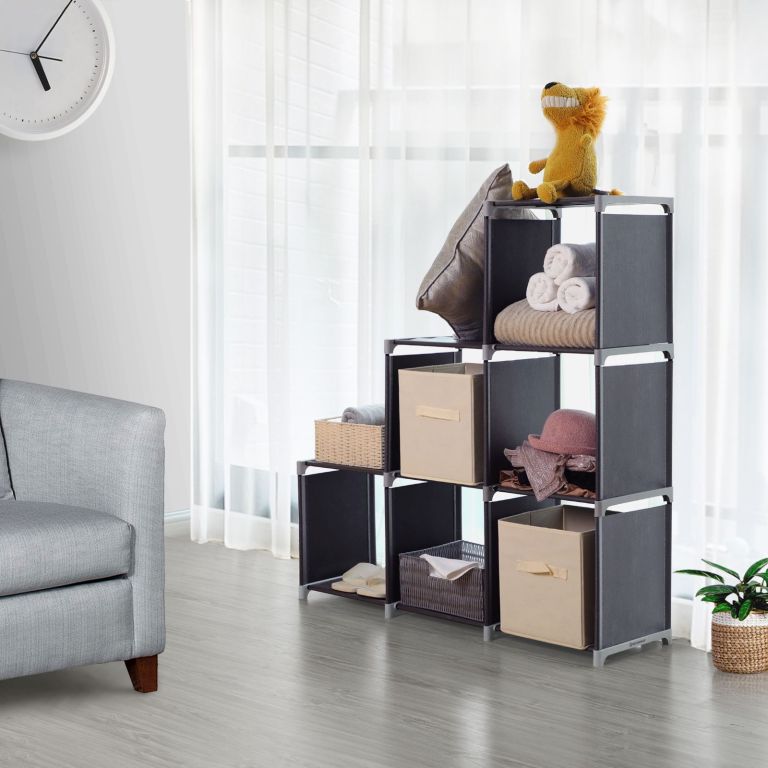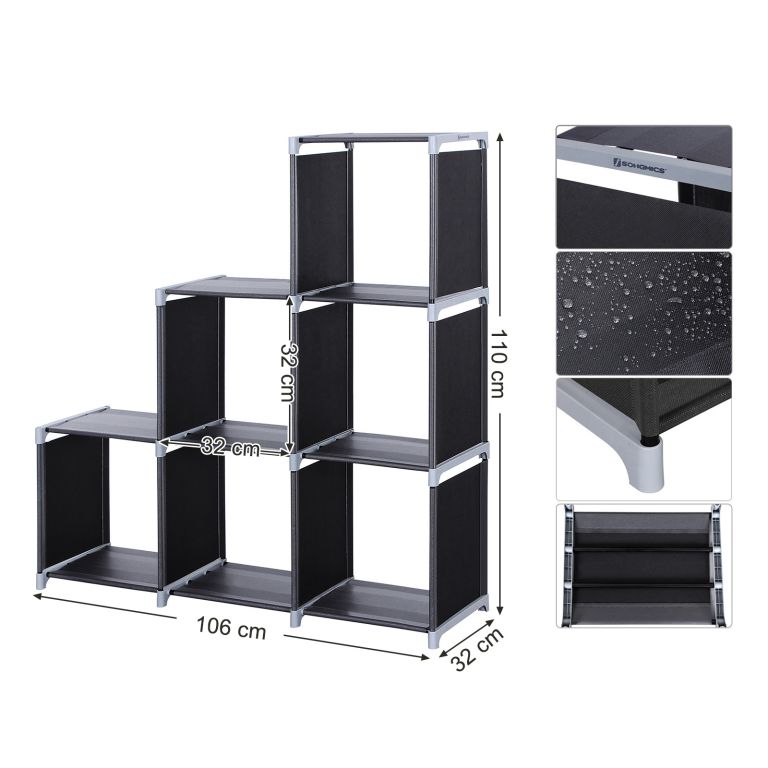 Moduláris textil polc 6 kocka 105×30×105 cm fekete