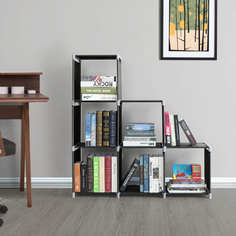 Rendeljen kézközelben. Ez a 6 polcos, változtatható polc a szoba egy sarkát áttekinthető tárolóhellyé varázsolja. A könnyű szövet tömör acéllal kombinálva légies, meleg kompozíciót hoz létre a nappaliban, a gyerekszobában és az öltözőben. Építse lépcsőházi bemutatópolcként vagy elegáns téglalapként a képzeletének nincsenek határai.