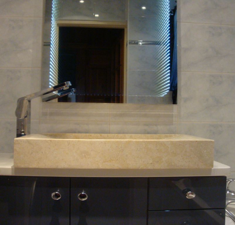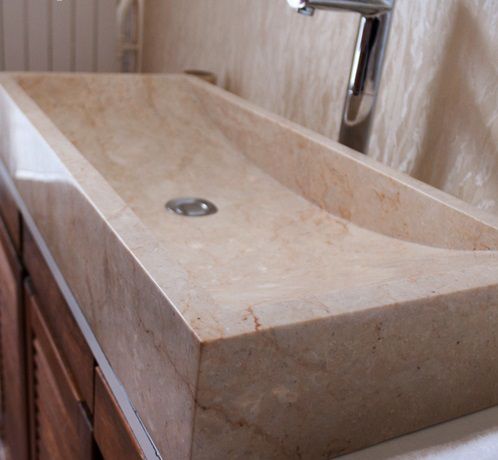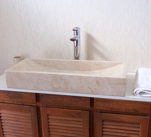 Design kézzel csiszolt kőből készült téglalap alakú mosdó.
