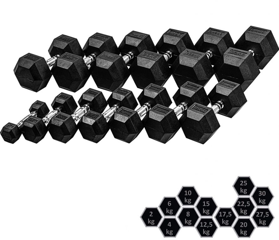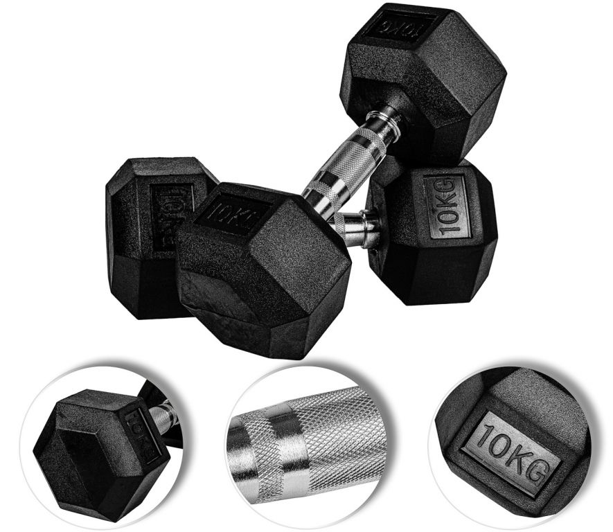 A súlyzók hatszögletű formája megakadályozza, hogy elguruljanak, így ideálisak edzőtermi és otthoni használatra egyaránt.