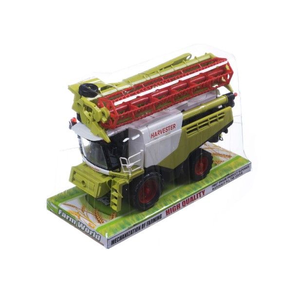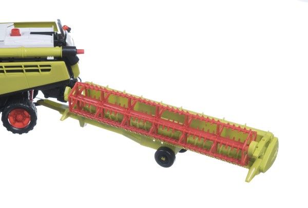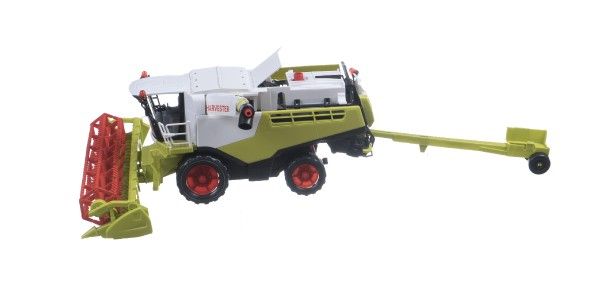 A részletgazdag szürke-zöld kombájn nagy első pengével a valódi mezőgazdasági technológia hű mása. A gépnek van egy oldalkarja a lerakáshoz és egy levehető pótkocsi. Konkrét szín vagy terméktípus kiválasztása technikai okok miatt nem lehetséges, a rendeléshez a készletopciók szerint véletlenszerű változat kerül hozzárendelésre.