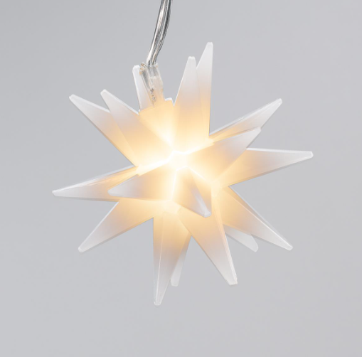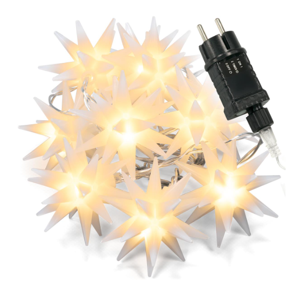 A láncon lévő karácsonyi csillagok egyenként 20 ponttal rendelkeznek, átmérőjük pedig 6 cm.
