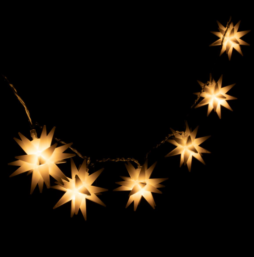 A részletesebb leírás megtekintéseA láncon lévő karácsonyi csillagok egyenként 20 ponttal rendelkeznek, átmérőjük pedig 6 cm.