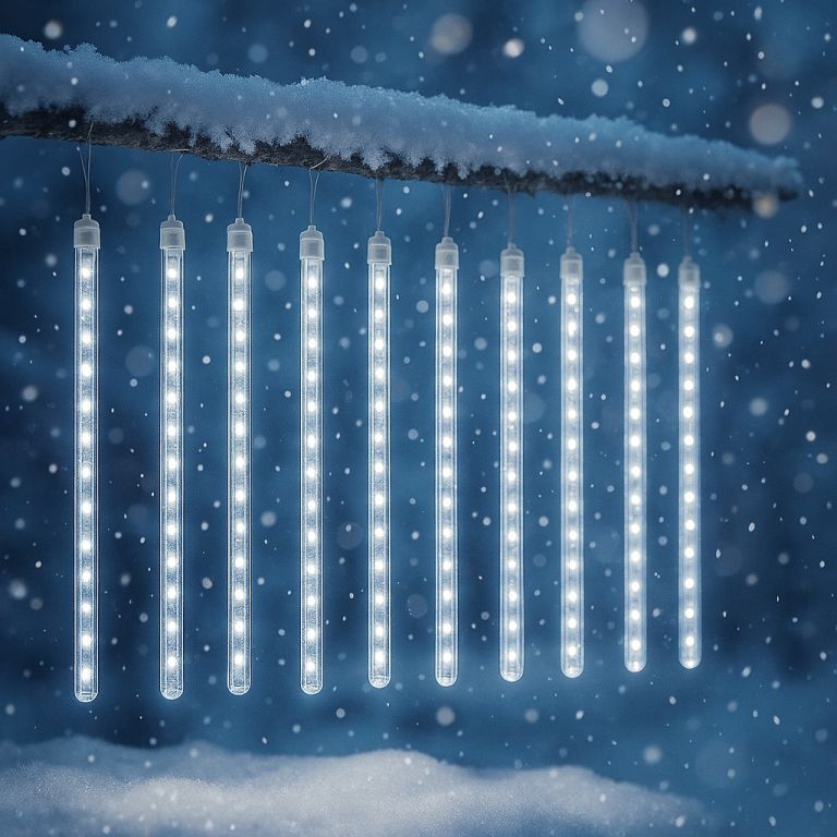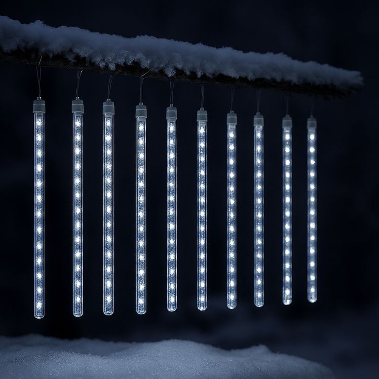 Kényeztesse magát jégcsap formájú, gyönyörű karácsonyi fényekkel, meteorok vagy vízesés hatásával. Beltéri és kültéri használatra készült. A világítás nemcsak karácsonyra, hanem minden alkalomra megfelelő, különösen az év hidegebb időszakában. A tápvezeték a transzformátortól az első rúdig körülbelül 5 méter hosszú, így bőven van hely a fényrudak elhelyezésére.