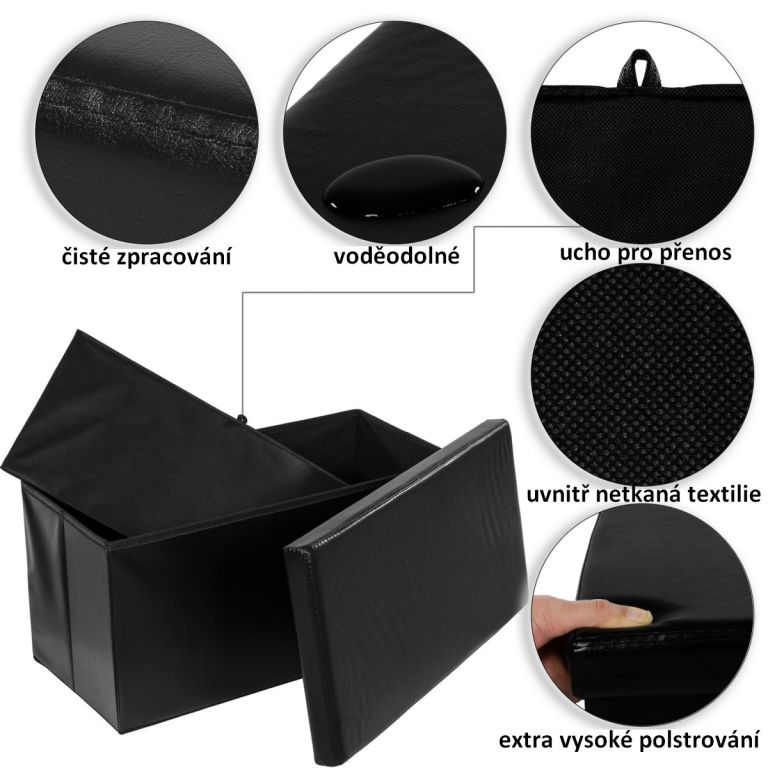 Ez az eredeti pad STILISTA® márkájú egyben szék és tároló hely. Használhatja ülésre és egyben elegendő helyet nyújt a tárgyainak. Kíváló minőségű műbőrből van gyártva és így dísze lesz minden lakásnak.Másik előnye ennek a kockának, hogy össze lehet rakni és eltenni vagy áthelyezni és nem foglal el felesleges helyet.