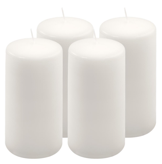 Élvezd az ünnepi hangulatot 4 darab fehér oszlopgyertyával (15 cm × Ø7,5 cm), amelyek illatmentesek, egyenletesen égnek és univerzálisan használhatók.