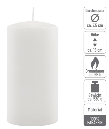 Mindegyik gyertya átmérője 7,5 cm, magassága 15 cm, 100% paraffinból készült, és körülbelül 65 órán át egyenletes égést biztosít. A gyertyák illatmentesek, stabilak és alkalmasak különféle gyertyatartókban vagy asztaldíszekben való használatra. Ideális ismételt meggyújtáshoz és hosszú távú használatra.