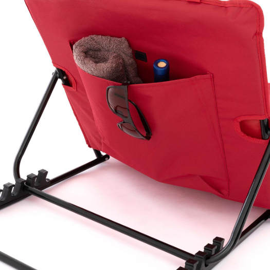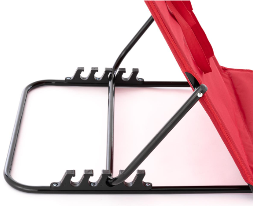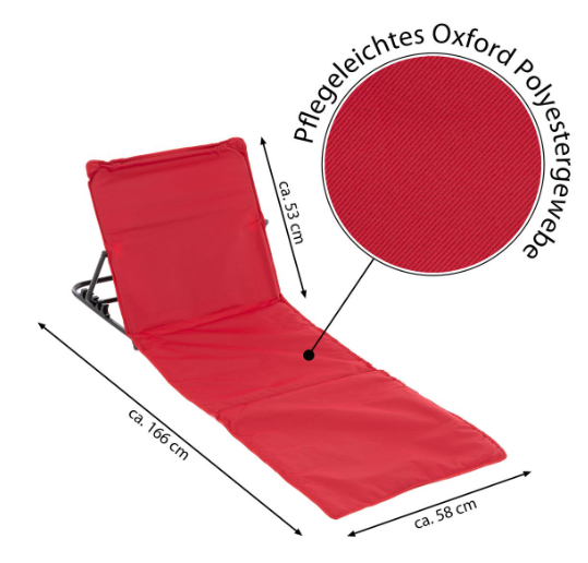 Élvezze a kényelmet a strandon vagy a kertben – az állítható háttámlájú, piros, párnázott szőnyeg összecsukható, könnyű és praktikus.