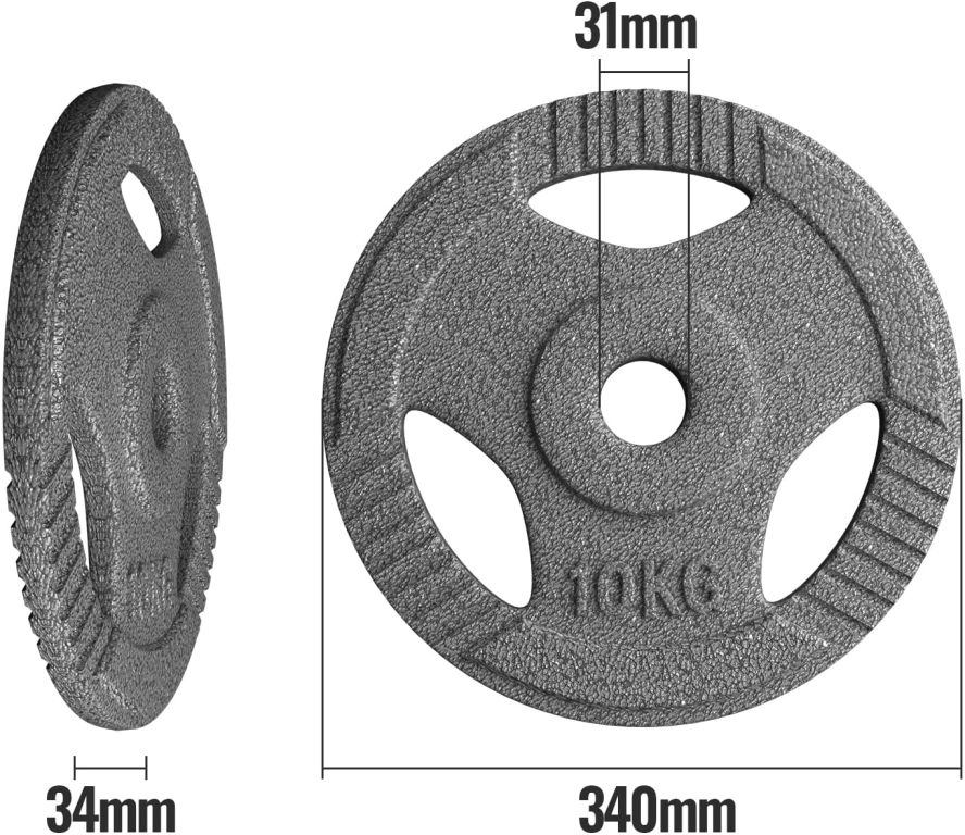 A 2 x 10 kg súlyú öntöttvas tehertárcsás készlet formájának és recézett fogantyúinak köszönhetően könnyedén megragad és minden otthoni edzőterem alapfelszerelésének nélkülözhetetlen részévé válik. Ezekkel a terhelő tárcsákkal és a hozzá tartozó rúddal különféle erőgyakorlatokat végezhet a felső és az alsó testre. A tárcsák furatátmérője 31 mm, ami a legtöbb súlyzórudra alkalmas. Súlyaink öntési folyamata garantálja a súlyok hosszú élettartamát és tartósságát.