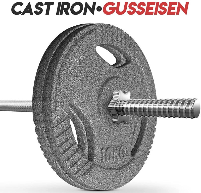 Ezek az öntöttvas tárcsák minden otthoni edzőterem elengedhetetlen kellékei, és formájuknak és recézett fogantyújuknak köszönhetően könnyen megfogható