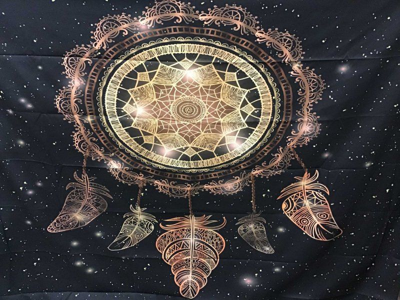 A részletesebb leírás megtekintéseA különböző mandala mintákkal ellátott dizájntakaró díszítheti a padlót és a falat is.