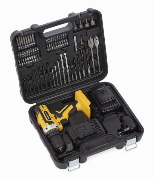 Ez a 20V-os vezeték nélküli fúró / csavarbehajtó ideális a könnyű csavarozáshoz és a fúrási munkákhoz. 2 db Li-ion akkumulátort (1500mAh) tartalmaz