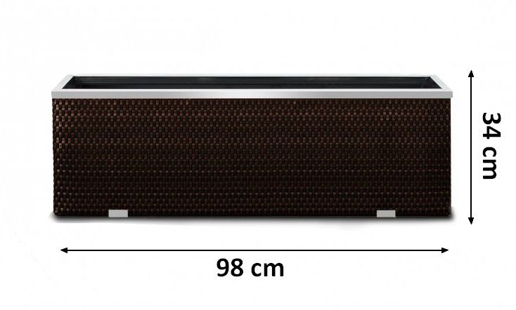 Műrattan és fémlemez kombinációjával készült virágláda, mely szabadtéri használatra alkalmas. Nagyon szép dizájn. Ideális kertbe, télikertbe, erkélyre, teraszra, de alkalmas előtermekbe is.