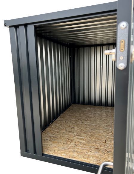A gyorsan megépíthető tárolóedény nagyszerű módja a tárolásnak bárhol. A padló nagy teherbírásának és az anyag tartósságának köszönhetően a konténer a szerszámoktól kezdve a gumikon át az építőanyagokig szinte bármi tárolására alkalmas. A konténer garázsként is használható motorkerékpár vagy kerti gépek számára. Nagyon egyszerű összeszerelés jellemzi, újra összehajtható és máshol felállítható. A stabil szerkezet ellenáll a kedvezőtlen időjárási viszonyoknak, hóterhelés 220 kg/m2-ig, szélállóság 130 km/h. A konstrukció horganyzott acéllemezekből készül, melyek 80 μm rétegvastagságú porszórással vannak bevonva, RAL 7021. A konténer összecsukott és széthajtott állapotban is targoncával mozgatható. A tárolt tárgyak biztonsága érdekében az ajtó két zárral van felszerelve. A keret horganyzott, 3 mm-es hidegen alakított, hegesztett acél profilokból. Az alap OSB-3 lappal (18mm) borított. A tető 0,6 mm vastagságú acél trapézlemezekből készül, amelyeket ponthegesztéssel kötnek össze. Az integrált ereszcsatornák a tető hosszú oldalain 1,2 mm vastagok. A falak 0,6 mm vastagságú trapéz alakú acéllemezekből készülnek, amelyek ponthegesztéssel kapcsolódnak egymáshoz. A felső és alsó profil biztosítja a falak épségét. Az ajtókeret 1,2 mm-es hidegen horganyzott, hegesztett acél profilokból készül. Az ajtók 0,6 mm vastagságú trapéz alakú acéllemezekből készülnek, ponthegesztéssel kapcsolódnak egymáshoz. Az ajtó belsejében 0,6 mm-es hidegen alakított acélprofilok találhatók. Az ajtó mérete 190 x 125 cm.