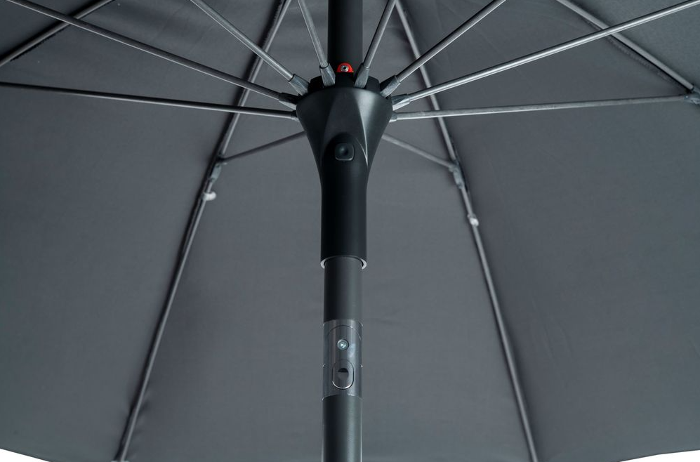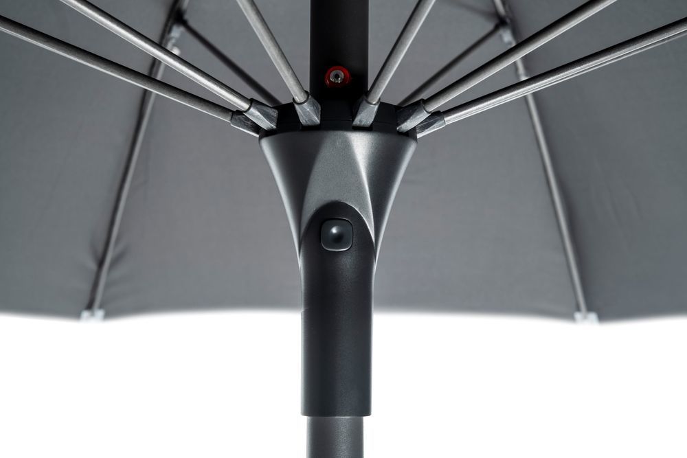 Dönthető, tízkaros esernyő kupola formában, modern kivitelben. A napernyő erős és egyben könnyű alumínium szerkezettel rendelkezik. A napernyő huzata vízlepergető bevonattal rendelkezik, amely megvédi Önt az enyhe esőtől. A nyitás kézi. Műanyag csavarral állítható a napernyő magassága. ÁLLVÁNY NÉLKÜLI!