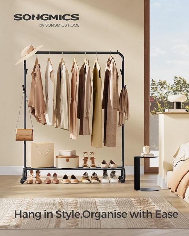 A részletesebb leírás megtekintésePraktikus ruhaállvány polccal és kerekekkel, akár 50 kg-ot is elbír. Ideális szárításhoz, tároláshoz és a ruhásszekrény rendbetételéhez.