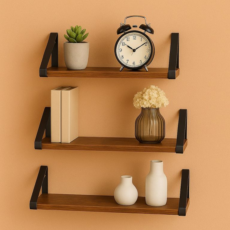 Mindegyik polc akár 5 kg-ot is elbír, és a kiváló minőségű forgácslapnak, valamint a masszív fém konzoloknak köszönhetően stabilitást és tartósságot biztosít. Az összeszerelés egyszerű, a konzolokat pedig felfelé vagy lefelé is rögzítheted, a kívánt megjelenéstől függően. Ez a három polcból álló szett tökéletes a nappaliba, a konyhába, a hálószobába és a fürdőszobába, és ötvözi a praktikumot a dizájnnal.