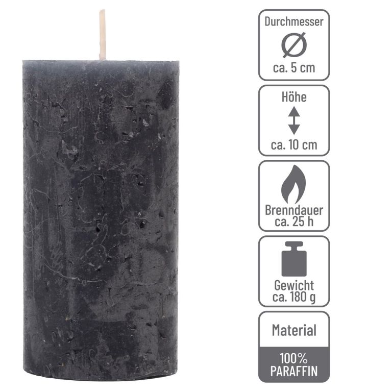 Rusztikus gyertya készlet 10 cm Ø 5 cm 8 db antracit