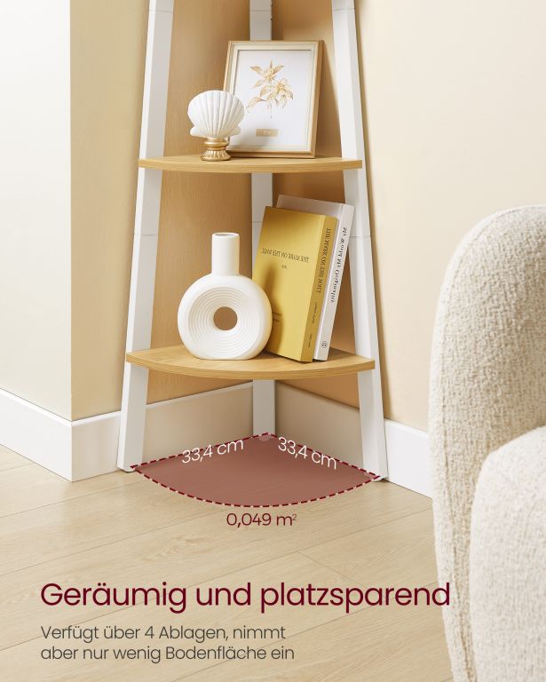 A részletesebb leírás megtekintéseStílusos sarokpolc négy polccal, természetes tölgy és matt fehér acél kombinációban, minden helyiségbe.
