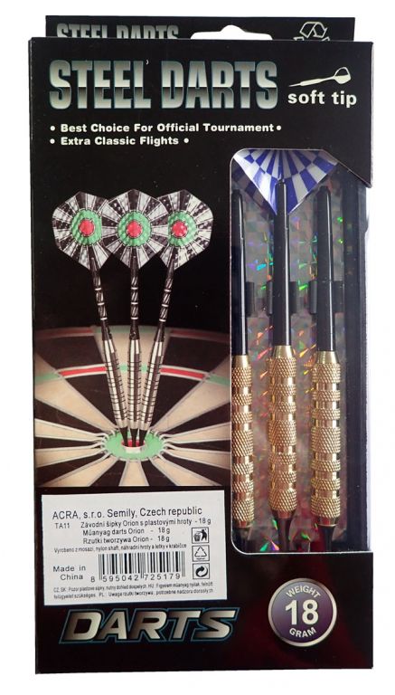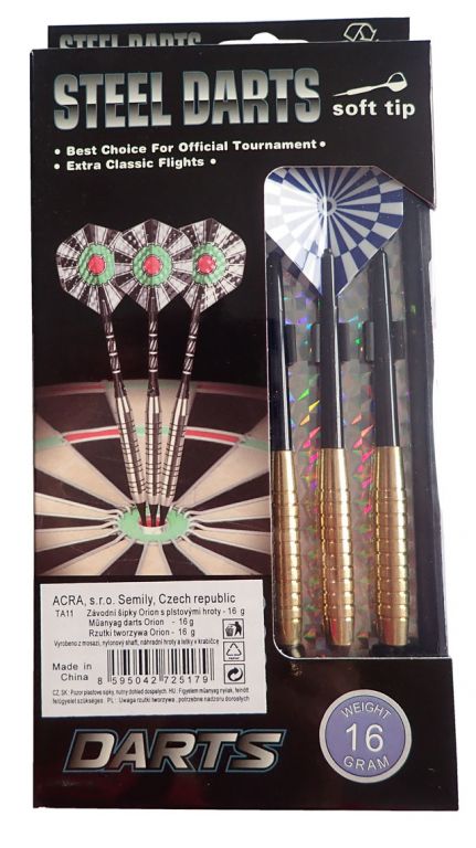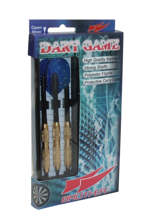 Nyilak műanyag hegyel "BROTHER" ORION - sárgaréz súlyzó 16g, nylon shaft - 3 db műanyag tokban, tartozék - tartalék hegyek, repülő részek a nyílhoz