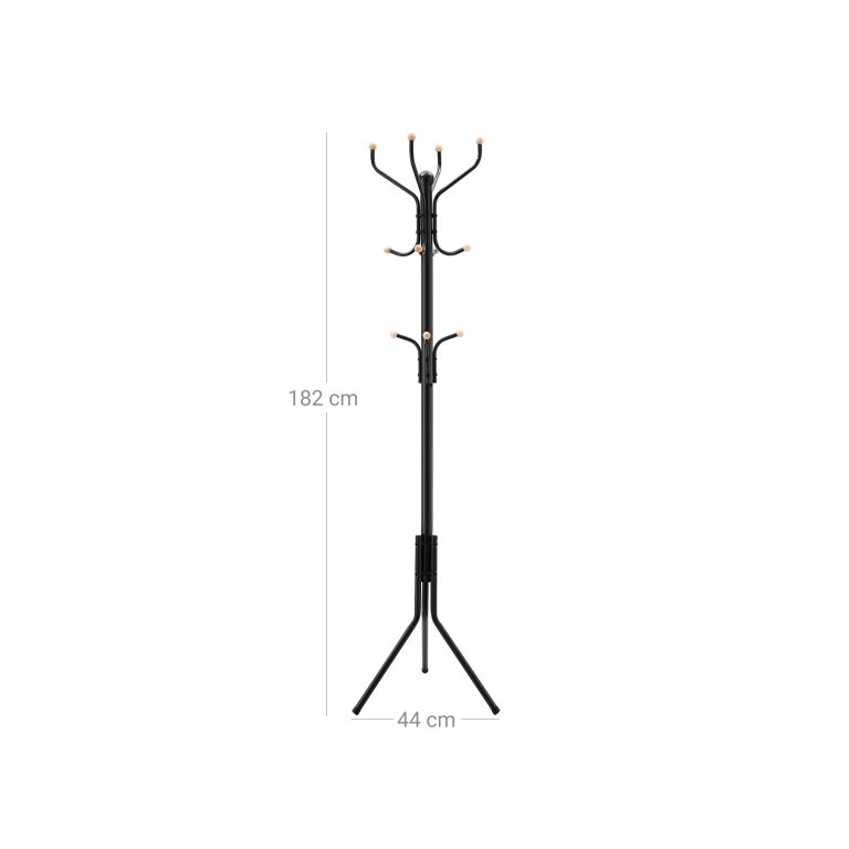 Elegáns, mégis praktikus megoldást keres ruhák, táskák vagy sapkák rendszerezésére? A 182 cm magas SONGMICS fém akasztó ideális választás előszobába, hálószobába, irodába vagy szállodába. Modern fekete dizájnja és fa akasztóvégei védik a ruhákat a sérülésektől, és időtlen megjelenést kölcsönöznek.