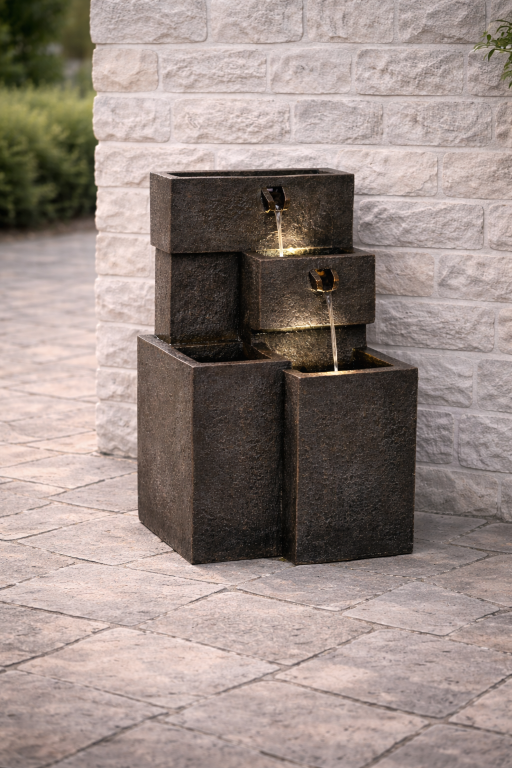 A "Bowls" dekoratív szökőkút a jólét oázisává varázsolja kertjét vagy teraszát. Tartalmaz egy fokozatmentesen állítható, egyenletes futású szivattyút, melynek köszönhetően a víz áramlik a körben, így nem szükséges a rendelésből vizet csatlakoztatni. A szökőkút kiváló minőségű polirezinből készült, amely ellenáll az időjárási viszonyoknak és az UV sugárzásnak.