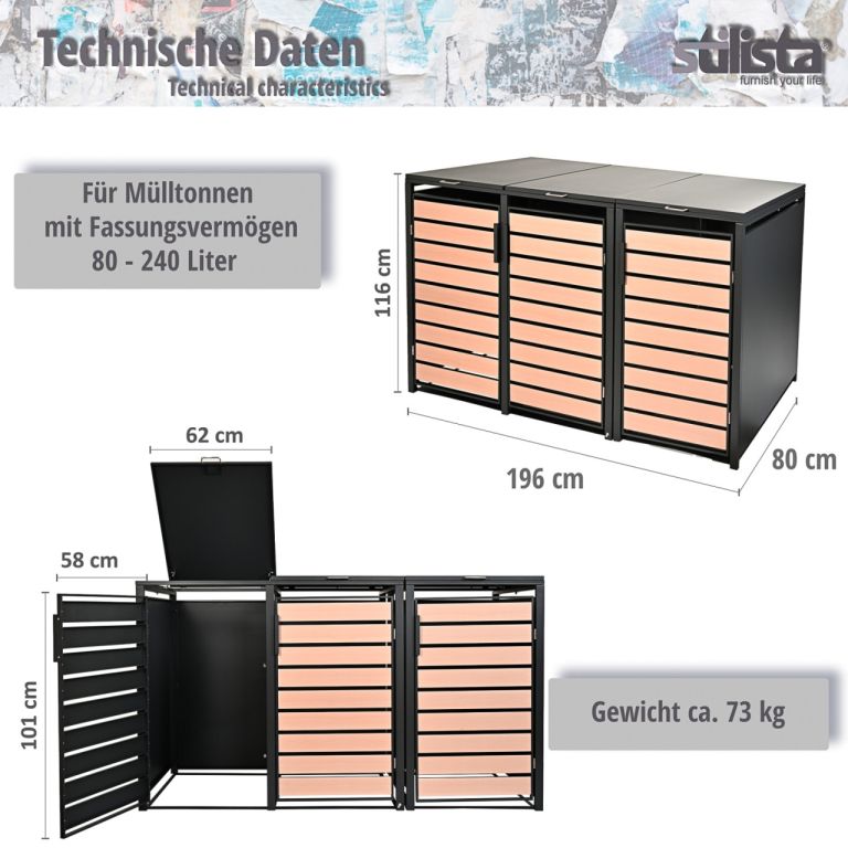 Három, akár 240 literes kosár számára biztosít helyet. A doboz fedelének gáznyomórugója van a könnyű nyitás és zárás érdekében.