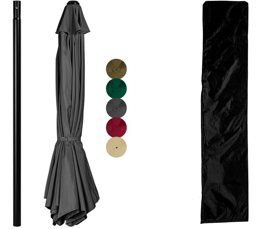 A napernyő a huzattal együtt masszív, 180 g/m2-es poliészterből készült, stabil acélszerkezettel és sok színt kínál. Napernyőnk kényelmesen nyitható és zárható kézi hajtókar segítségével. Optimális árnyékot kap a napernyő minden irányban állítható dőlésszögének és a forgókarnak köszönhetően. A napernyő védelmet nyújt a napsugarak ellen, a levegő keringését integrált tető támogatja, amely megakadályozza a hő felhalmozódását. Ezenkívül a vízlepergető bevonat védelmet nyújt az enyhe eső ellen.
