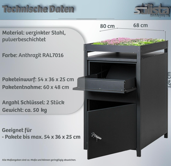 Vigyen stílust és praktikumot otthonába a STILISTA postaládával, amely nemcsak a csomagok biztonságos tárolását biztosítja, hanem a növénytartó tetőnek köszönhetően teret ad kreativitásának is. Bejárata egyedi megjelenést kap, és soha többé nem kell aggódnia az elveszett küldemények miatt.