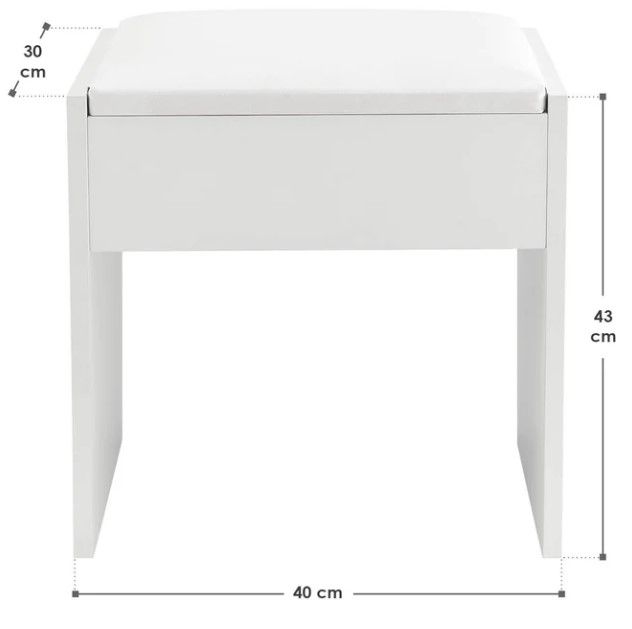 Taburet fésülködőasztalhoz 42 cm kárpitozott fehér