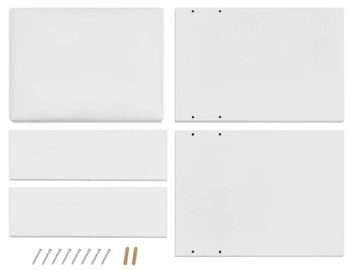 A fehér fa deszkákból készült robusztus konstrukció hosszú élettartamot és egyszerű karbantartást biztosít. A felület karcálló és könnyen tisztítható. Az összeszerelés gyors, és bárki néhány perc alatt elvégezheti vele a munkát. A védőlábak védik a padlót a sérülésektől.