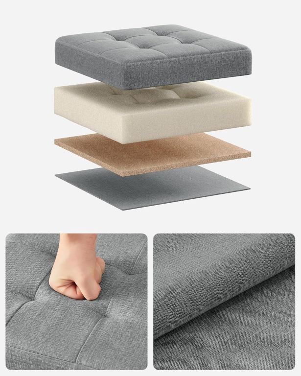 Elegáns és praktikus segítő minden otthonba a SONGMICS összecsukható zsámoly modern világosszürke színben ötvözi a stílust, a kényelmet és a funkcionalitást. A puha vászonkárpitnak köszönhetően kényelmes ülést biztosít, ugyanakkor elegendő helyet rejt apró tárgyak, takarók vagy könyvek tárolására. Ideális nappaliba, hálószobába és előszobába egyszerűen bárhová, ahol több helyre és stílusra van szüksége.