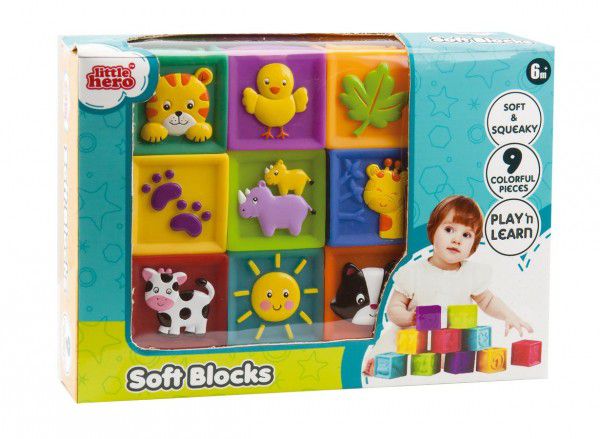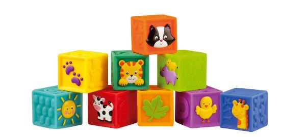 Puha gumi kockák vidám színes képekkel. A készlet 9 db kockát tartalmaz.