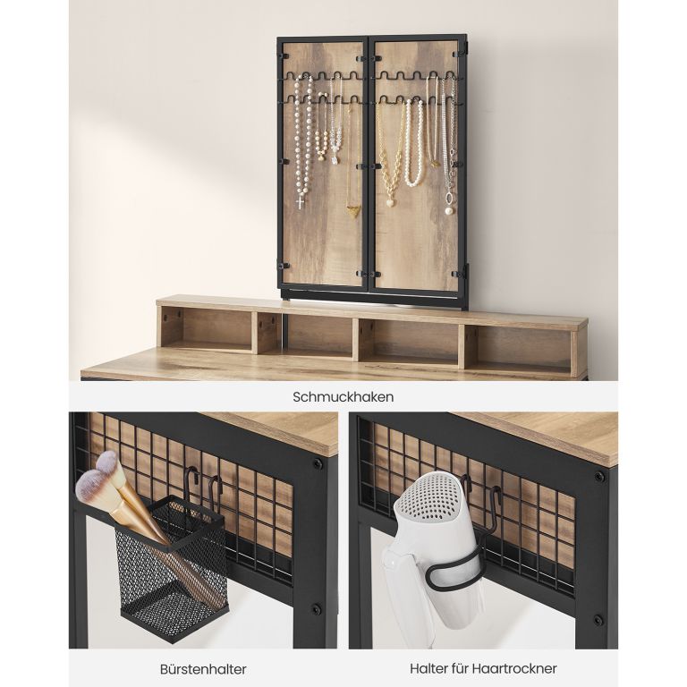 Toalettasztal három tükörrel és tárolórekeszekkel