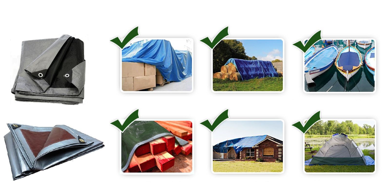 A ponyva polipropilénből készült, mindkét oldalán polietilén réteggel bevonva, amely hatékonyan véd az eső, hó, szél, nap ellen. A ponyva nem arra szolgál, hogy szabadon a térbe feszüljön (tárgyak közé lógjon vagy a levegőbe feszüljön). Az ezüstszínű réteg visszaveri a napsugarakat, ami véd a ponyva alatti hőmérséklet-emelkedés ellen.
