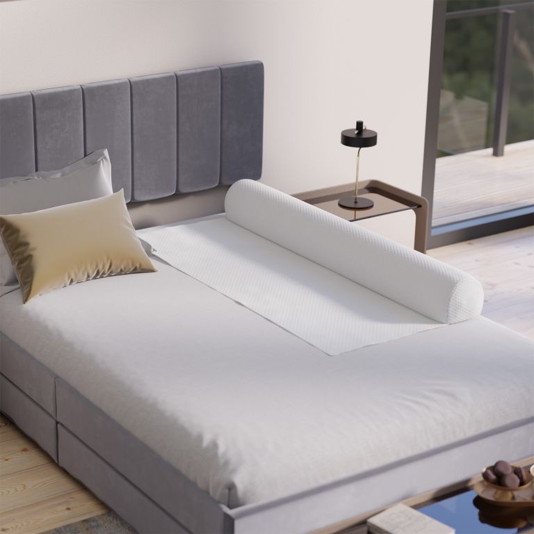 Felfújható leesésgátló gyerekágyhoz, könnyen hordozható, puha huzattal. Biztonság bárhol.