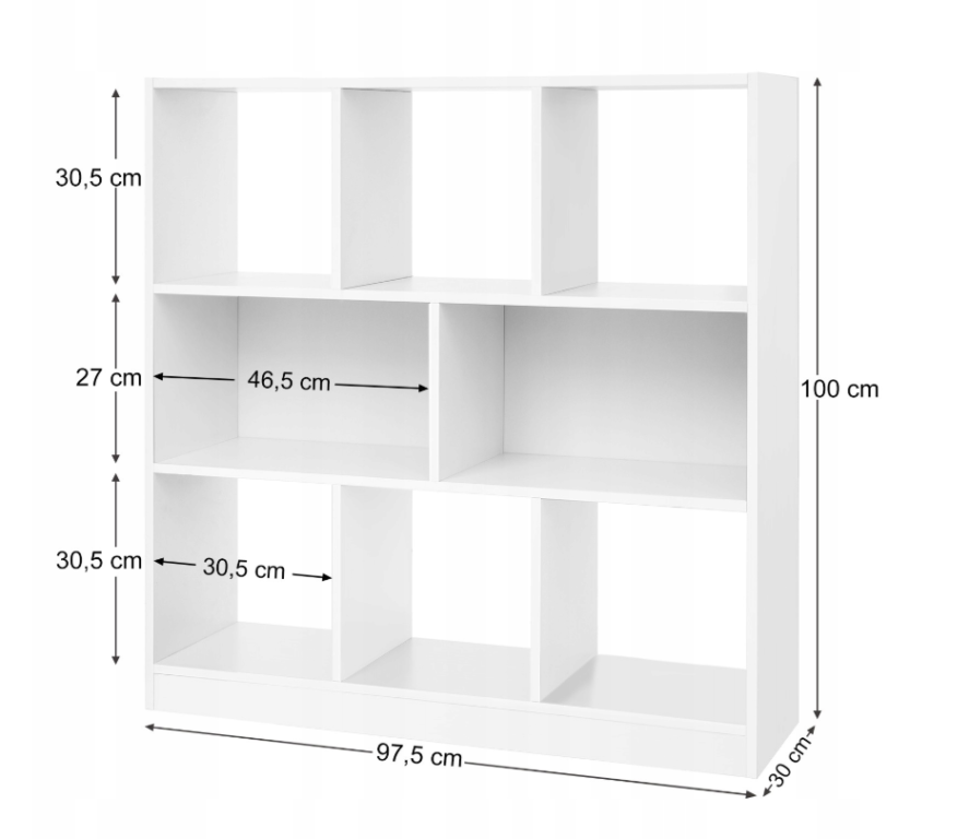 méretek: 97,5 × 30 × 100 cm (H × Sz × M)